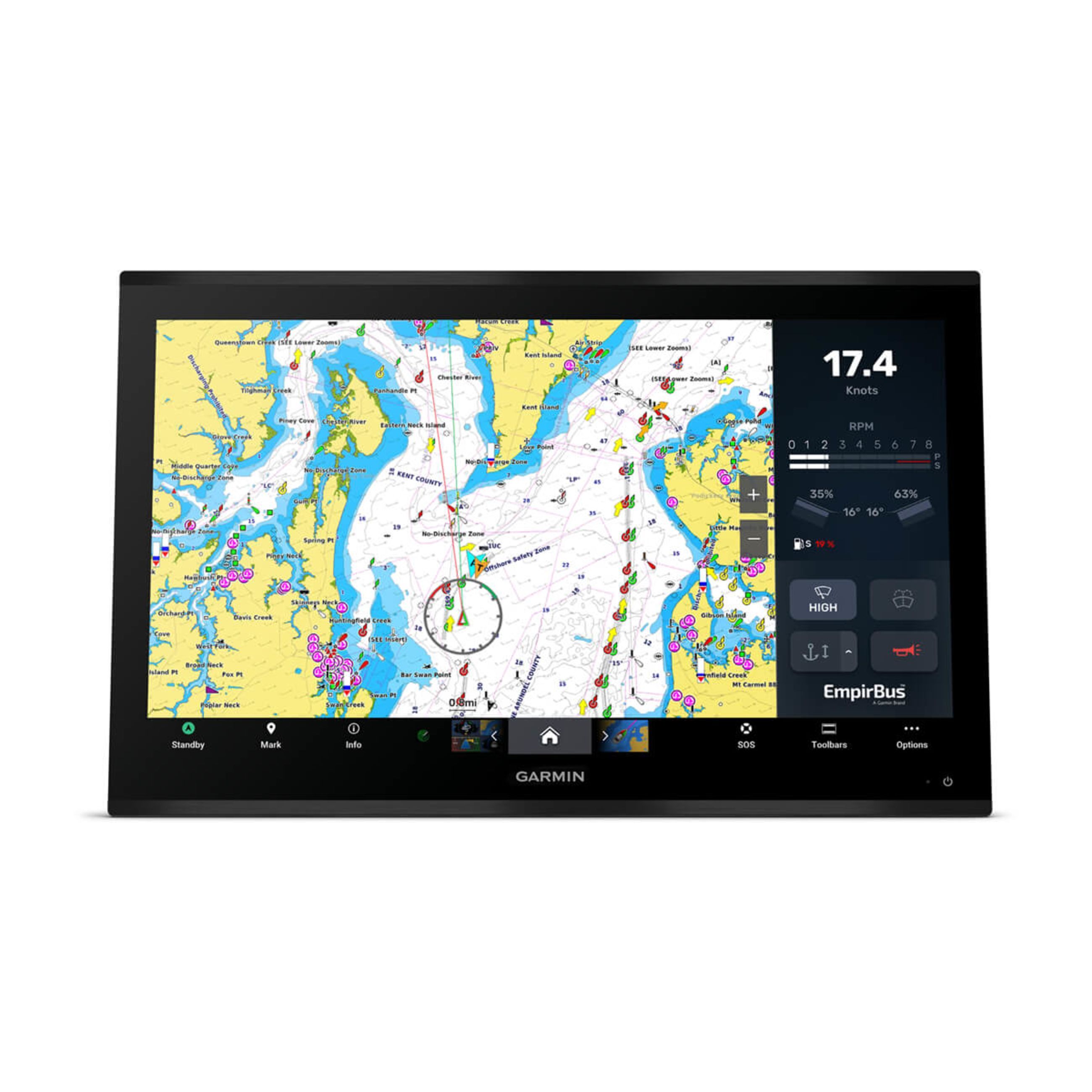Gpsmap 9213Xsv Is A Premium Chartplotter With A 13″ 4K Touchscreen Display With Built-In Navionics+ Maps & Sonar With Gigabit Speeds On The Bluenet Network.